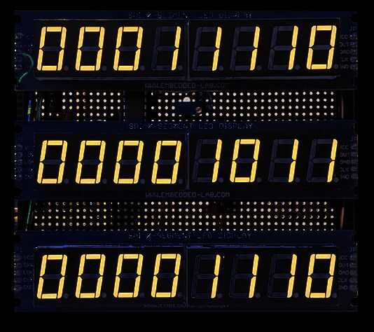 Fila superior indica el día y muestra binario 00011110 se 30 en decimal por lo que es el día 30.