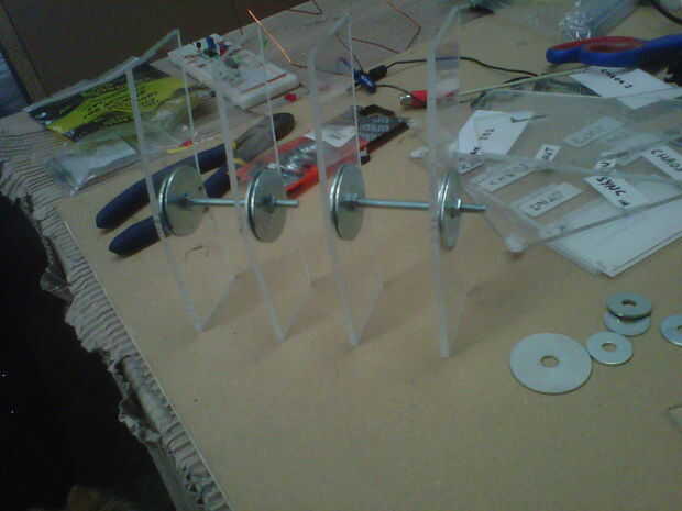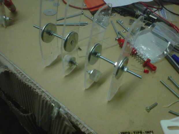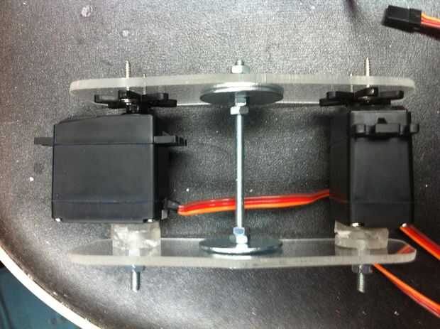 -la mejor manera de conectar el servo es hacer 3 agujeros en línea, los 2 agujeros a cada lado Fije el brazo/disco que da vuelta, el agujero de centro será por lo que puede conectar el servo a su brazo/disco con el perno después de instalar el disco en el plexiglás.