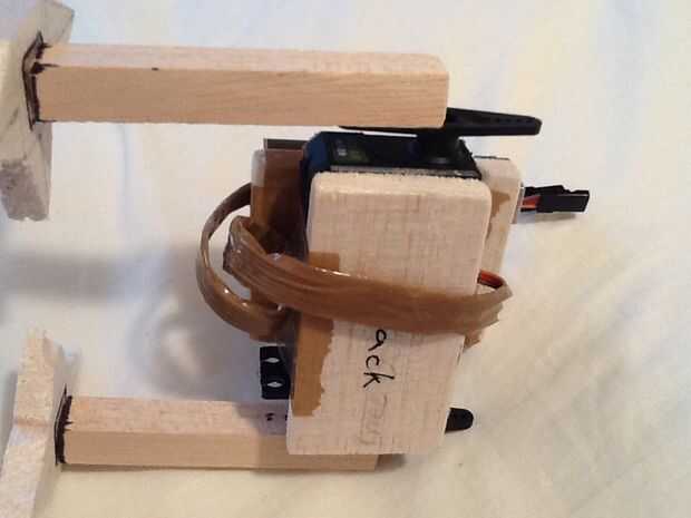 2. Coloque cuidadosamente los dos servos con sus cuernos sobresalir hacia fuera en el lado pegado de la madera.