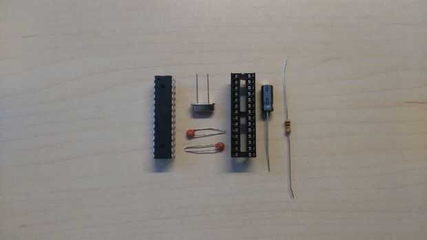 - Conecte a cada pin de un condensador de 22pF oscilador. El otro pin de condensadores va al pin 8 (GND) del micro controlador.
