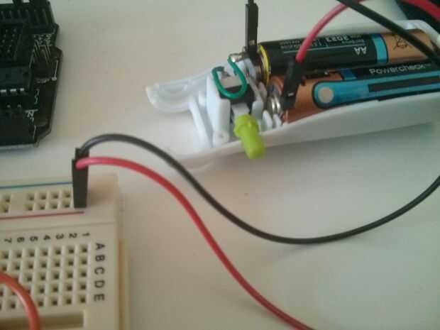 Nuestras baterías actuará como nuestra fuente de energía en este circuito con el Arduino solo sirve para el control. Las baterías deben ser encadenados juntos para dar una salida de 3V. Simplemente conectado el terminal positivo de baterías encadenado a la energía positiva y la negativa para el carril de tierra.