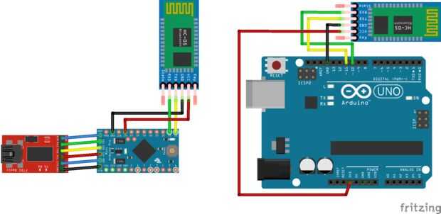 La RX HC-05 para el Arduino UNO TX en el pin 11 a través del divisor de tensión de alambre explicado antes.