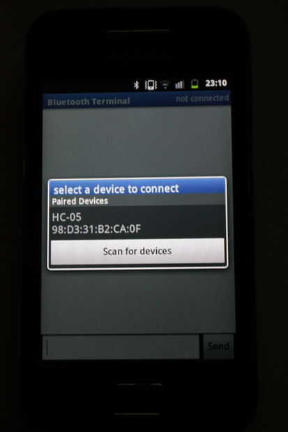 Usé el Bluetooth Terminal para Android. Cuando han hecho eso abrir la aplicación haga clic en conectarse a un dispositivo y pulse sobre HC-05 se debe conectar ahora.