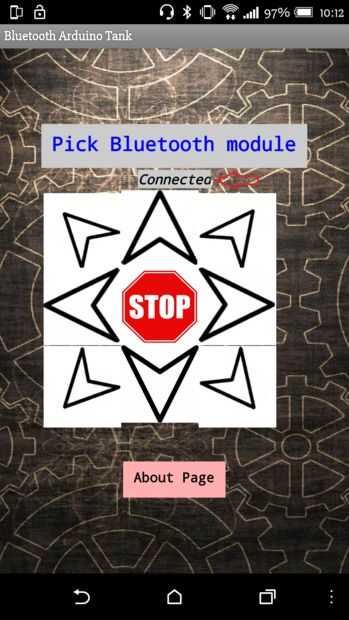 - La aplicación regresará automáticamente a la pantalla principal con controles direccionales y ahora bajo el botón de "Seleccionar Bluetooth Module" debe ahora decir "conectado"