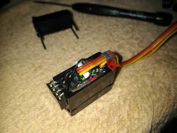 Por desgracia mi motor 360 servo accidentalmente mal por lo que tiene que modificar un motor servo mini en un motor de servo de rotación continua. Haga clic en el enlace abajo para el motor servo de la información de piratería.