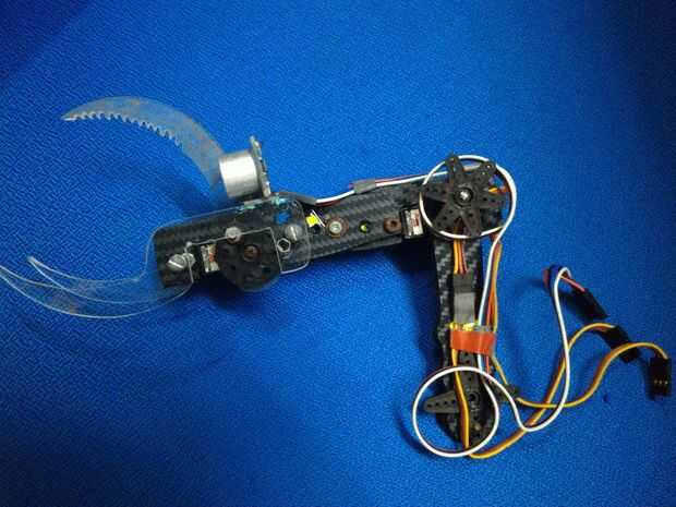 Corte y construir un brazo robótico mediante el uso de tablero de plástico acrílico transparente. no te olvides de instalar el motor servo. La garra que se corto fue 10cm de longitud, 13,5 cm para el brazo y 10cm para los brazos.