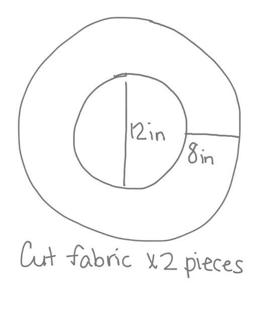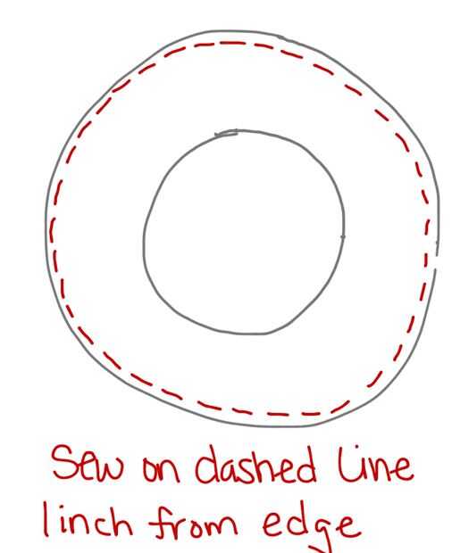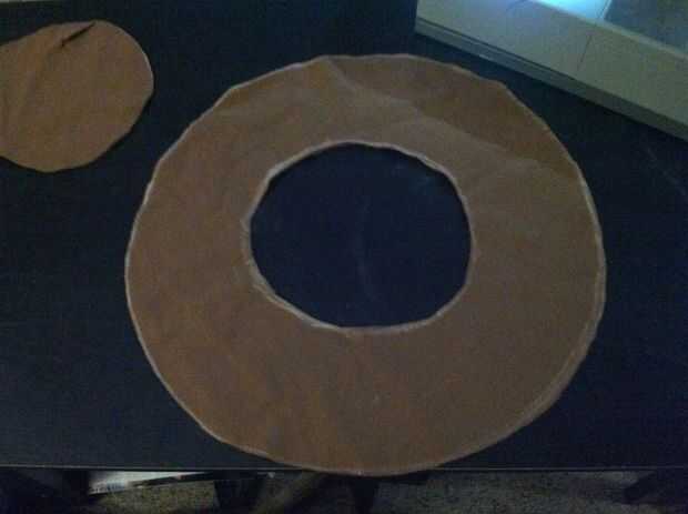 Trazar el "donut" en el material del sombrero. Corte dos pedazos de donuts de tela.