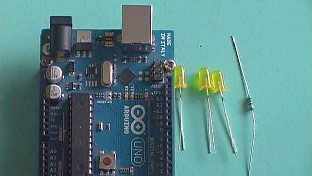 Paso 1: Materiales reunirPara este proyecto he comprado un Arduino Uno REV 3, un LED blanco brillante, cuatro resistencias, un interruptor de botón, cuatro separadores de placa de circuito, soporte de la batería de un 8 x 1.5 AA, cable de conector de