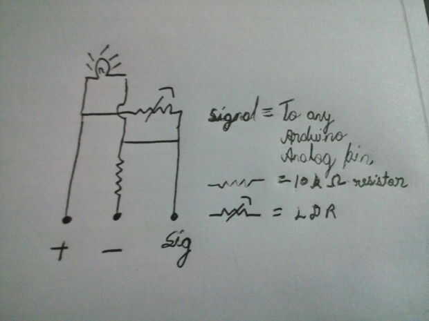 Ser capaz de decir si o no usted faros es sobre el uso de un sensor de arduino y FotoPaso 1: Lo que necesitará 1. Arduino * utiliza y Arduino Uno2. jumper cables3. vehículo con faros manual4. led5. fotoresistorPaso 2: Los circuitosUna corriente recor