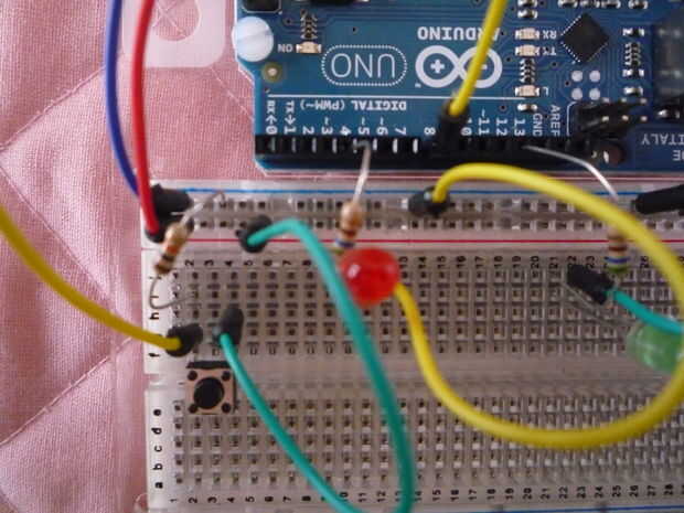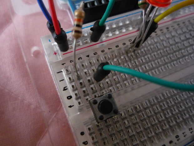 Nota: Es importante que ninguno de los botones están conectado a las mismas filas ocupadas por los LED (dos para cada uno o tres para cada uno, según la configuración que elegiste en el paso anterior).