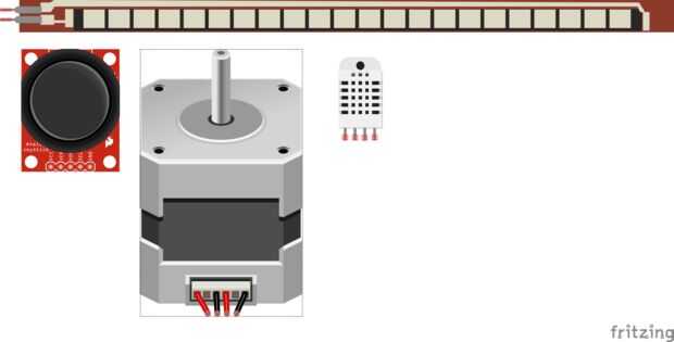 - DHT-11, ha añadido Joystick del pulgar, flexión Sensor y Motor paso a paso
