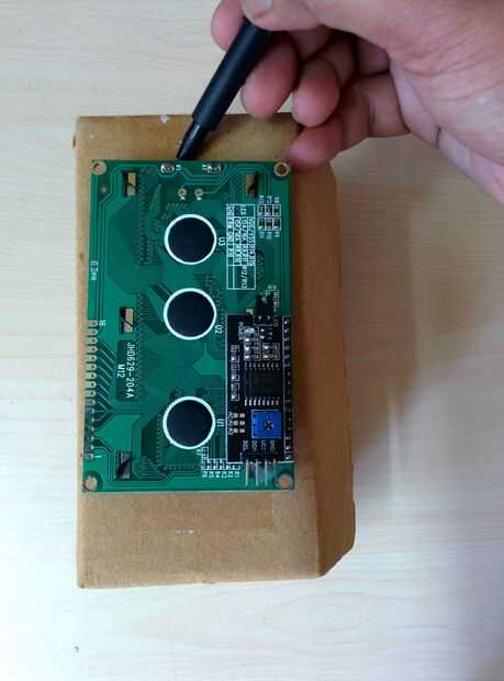Insertar la pantalla lcd en a la parte de corte de la caja.