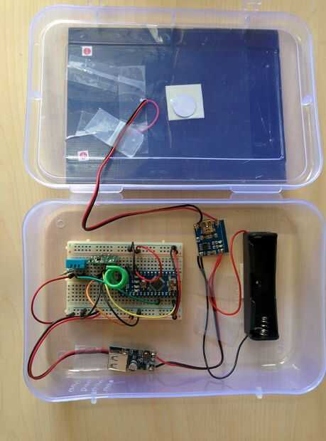 Para montar el panel solar y soporte de la batería usé skotch cojín. El tablero de mini pan tiene teclado incorporado para pegar.