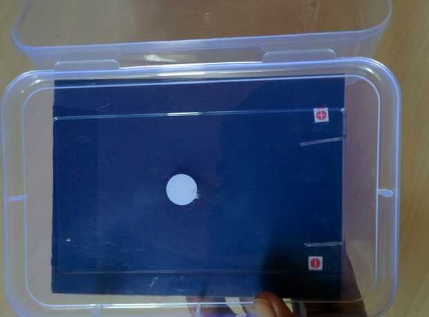 Hacer un agujero en la parte superior de la caja de plástico para insertar el cable del panel solar.