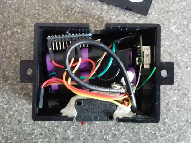 El poder de este proyecto proviene de dos 18650 baterías en paralelo y conectados a una carga y el circuito del convertidor del voltaje hackeado de un banco de energía barata. El circuito de salidas de 5v mediante un puerto USB y acepta 5v para recargar las baterías a través de un micro conector USB. Por el momento no tengo idea cuánto poder atrae a este dispositivo!