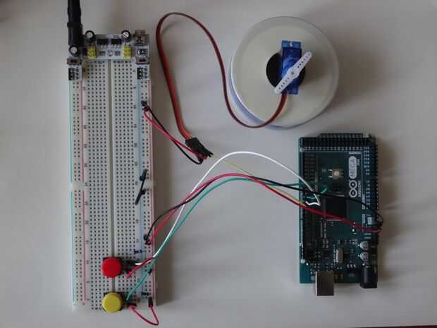 El proyecto se completa. Puede utilizar los botones para controlar el servo. Si mantiene pulsada una de las teclas el servo se mueve en una dirección hasta que alcance la posición final. Si mantiene presionado el botón el servo se mueve en la dirección opuesta hasta alcanzar la posición final.