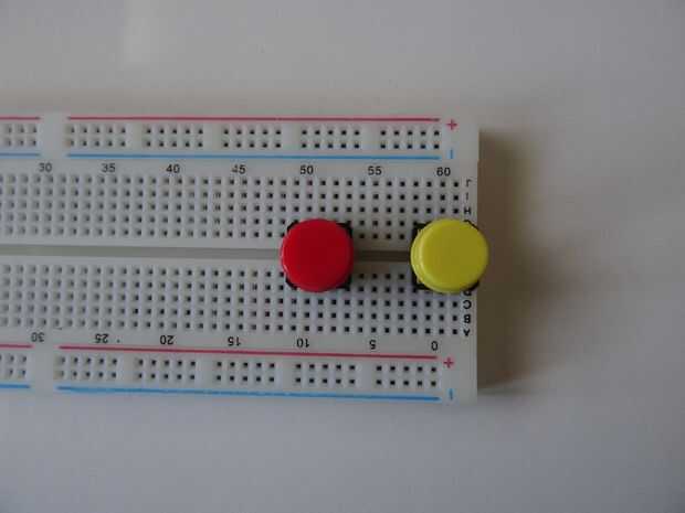 3. Conecte los cables de jumper entre los otros extremos de los botones y poder en el autobús de la poder de protoboard (foto 3)