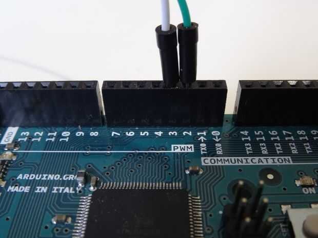 2. Conecte el otro extremo de uno de los cables (cable verde) al Pin Digital 2 de la placa de Arduino (foto 2)