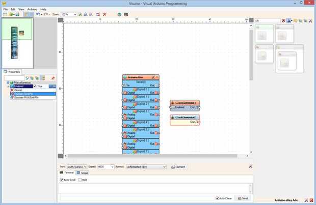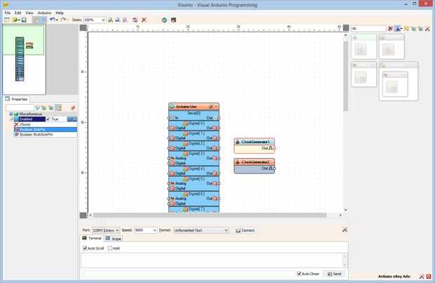 - Seleccione ClockGenerator1 en el área de diseño. En el Inspector de objetos haga clic en el botón de Pin en la parte delantera de la propiedad Enabled y seleccione "Boolean SinkPin" (foto 2)