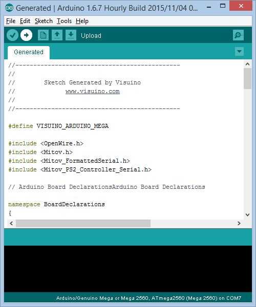 1. En Visuino Pulse F9 para generar el código de Arduino