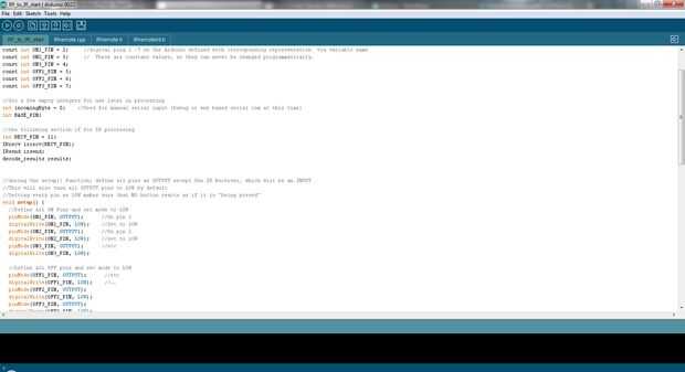 durante la función setup(); definir todos los pines como salida excepto el receptor de infrarrojos, que será una aportación