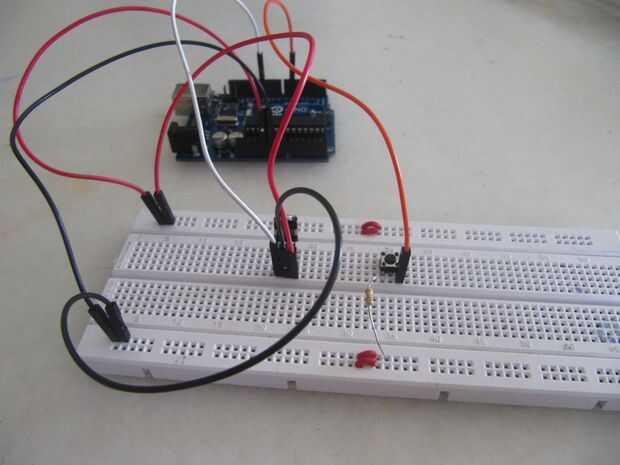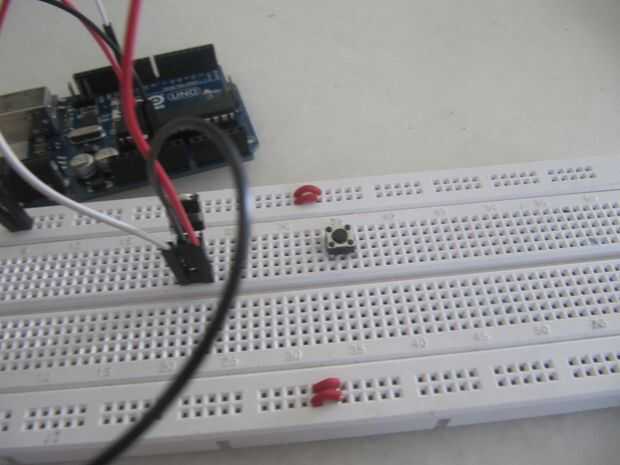 3. Coloque el interruptor de botón y conecte a tierra con una 10 k resistencia y luego pin 6
