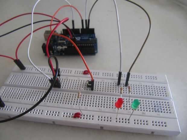 4.Finally, conectar leds a tierra y luego usar resistencias de 100 ohm serie, conectar a los pines 3 y 4