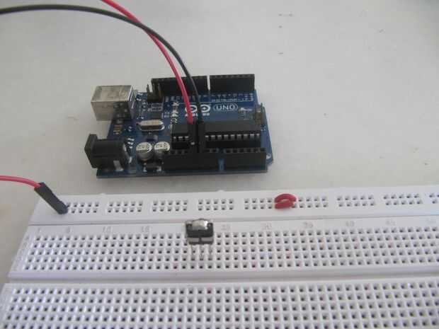 2 Coloque el receptor de infrarrojos en la placa y conecte sus pines especificados al poder, la tierra y el pin 11