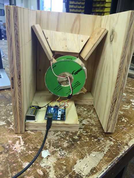 Conecte el volante en la parte posterior de la caja con pegamento o tornillos. Luego coloque la batería y el arduino a la caja pero alejados de la rueda. Esto permite que el disco se mueva libremente, haciéndolo más fácil para su mascota recibir la comida.