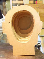 En cambio, fue creado el shell principal de la cabeza en dos partes, que podrían ser montadas juntos. Las capas de frente 5 fueron pegadas para formar una cara desmontable. Todas las capas se pegan para formar la parte posterior de la cabeza.