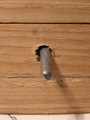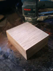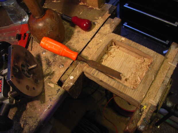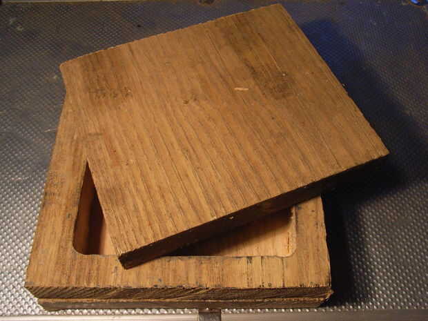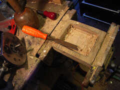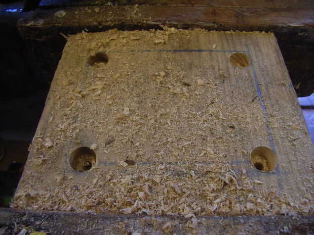 Para crear el hueco, se cortó un agujero cuadrado de uno de los tablones. Esto entonces fue pegado a otro tablón. El agujero en la tabla superior fue utilizado como una guía de la fresadora, para profundizar el hueco en la tabla inferior. Esto fue entonces arreglado para arriba con la mano con un poco de moda vieja buena de pelado con un cincel