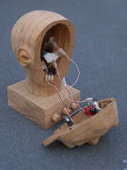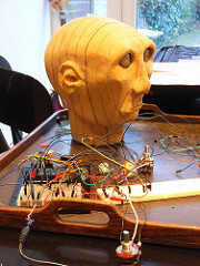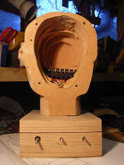 A la derecha es el acabado con la cara que se quita para mostrar las conexiones flexibles de los mecanismos de cara al bloque de conexión de la base de la cabeza.