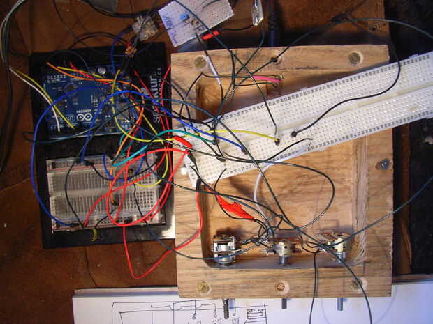 Esto era un desastre diferente de cables, y de vez en cuando todavía quedaron desaparecidas partes de las versiones anteriores del circuito en el protoboard.