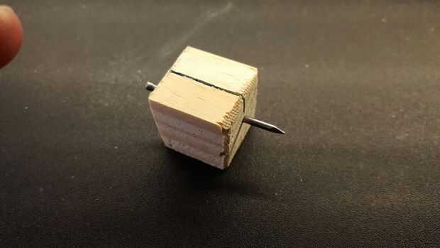 Sin embargo, decidió hacer una pequeña modificación a estos solenoides y simplemente apalancar la bobina de la carcasa de metal. Un duro de 2 clavos finales es, 072"(1.83 m) de diámetro y 1.5" (38 mm) de largo. Corte el punto de hacer una varilla de 28mm de largo. De Ebay he comprado unos 2mm diámetro de X 3 mm de largo imanes ($5.00/100 PC).