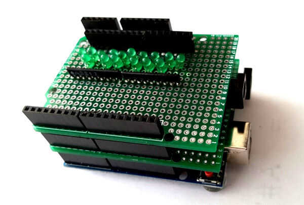 Un segundo escudo fue construido también que 16 LED. Esto le permite ver las notas de ser jugado y ayudó en la solución de problemas del software.