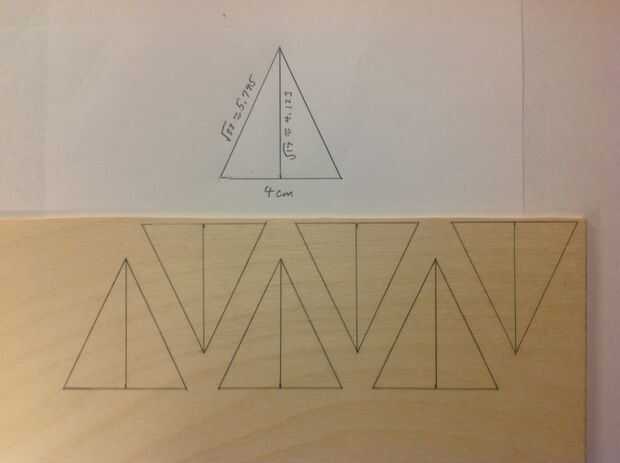 La cúpula era la parte más difícil del modelo. Se hace el techo hexagonal de seis triángulos isósceles, cada uno con una base de 4cm. Vea la figura 2-2. Me propuse para que el techo a una altura de 1cm en el centro, que significaba que los otros dos lados de cada triángulo deben tener una longitud de 5,745 cm. Mi corte y empalme deben haber sido apagado como el techo real terminado con una altura de unos 2cm. Esto funcionó bien, como esta configuración más como el techo de la cúpula actual. No puedo cambiar el ángulo de la hoja en mi pequeña sierra de banda, así que tuve que girar las aristas de los triángulos con una herramienta giratoria Dremel. Usé pegamento caliente en lugar de pegamento para madera para armar el techo ya que, cuando esté seco, hay más "elasticidad" en el pegamento caliente. Necesitaba esto desde que tuve a "masaje" de la azotea un poco para conseguir que se sientan bien. Vea la figura 2-3