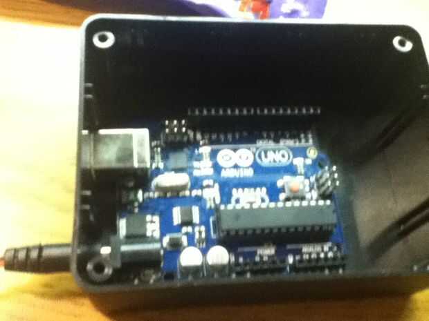 Esta es una parte muy emocionante! Llegar a tomar todos ésos electrónica de aspecto desagradable, bruta y lío de resistencias y cables y los empujar lejos en la caja bastante mirar donde nadie puede verlos! Ahora hay varias cosas que usted querrá considerar antes de pasar por este paso. En primer lugar, ¿qué tan fácil ¿quieres que sea cambiar la batería? En segundo lugar, ¿lo quieres para poder reprogramarlo? Esto determinará cuántos agujeros necesitará taladro/corte en la caja. Para comenzar, usted querrá encontrar un lugar en el cuadro para poner tu placa de arduino. Puesto que quería mina fácil para substituir la batería y re programable, colocó cerca del borde y, con mi cuchillo de bolsillo, corte 2 agujeros para el usb cablegrafían y cable para ir a través de. A continuación, decidí que sería la orientación de "top" de la caja y 2 orificios de los interruptores ir a través. Por último, en el fondo, perfore un orificio final donde saldrán todos los cables. Ahora es sólo una cuestión de todo bien en la caja de montaje. comenzar poniendo 4 toques de pegamento caliente en cada esquina de la placa arduino, y nestle comodamente en su lugar. Una vez que haya curado el pegamento, puede empezar a todos los interruptores y meter los cables de salida a través del orificio y se conectan a la placa de montaje.