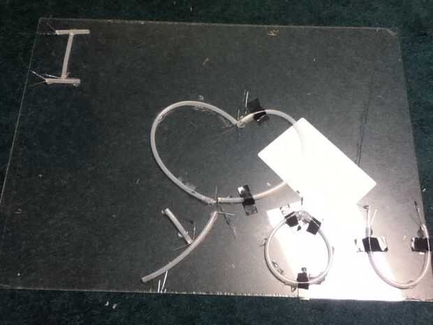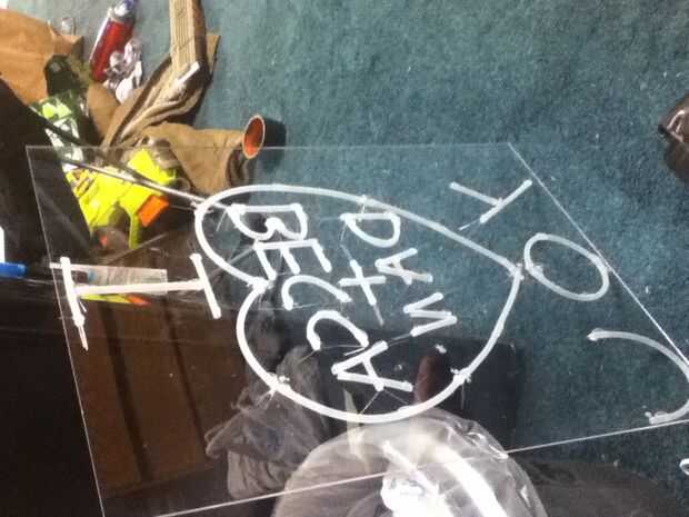 Este es por lejos la parte más difícil del proyecto, por favor, aprender de mis errores! realmente. Tuve que volver a empezar dos veces porque yo estaba teniendo problemas. Para empezar, utilice pegamento caliente. Además, asegúrese de que usted utilice pegamento caliente. Oh, y ¿he mencionado para utilizar pegamento caliente? No intente utilizar otro tipo de pegamento, porque no funciona casi tan bien. Usted tendrá que doblar esta tubería de muchas maneras que no quiere ir, por lo que necesita un pegamento que es fuerte, tiene una viscosidad alta y se seca muy rápidamente. Pegamento caliente es el único adhesivo que va a funcionar. Confía en mí en este caso. Aparte de eso, esto es bastante autoexplicativo. Si usted presenta su diseño correctamente y cuidadosamente cortado y había montado todos los tubos, entonces esto debe ser un paso fácil. La parte más difícil sería las Letras con curvas y curvas, como la B. Estas son difícil de hacer y mejor hecho a partir de un extremo de la curva y poco a poco su forma de trabajo con un chorro de cola. Otra cosa que prestar mucha atención a es los cables en el LED. ¿Recuerda el paso 2 donde hablamos sobre la polaridad de LED? Bien, aquí está tu oportunidad de hacer su vida mucho más fácil en los pasos siguientes y que el Consejo parezca mucho más agradable. Coloque el LED para que usted pueda obtener los mismo cables de polaridad de tantos LED como juntos como sea posible. Por ejemplo, en las formas circulares (de O y el corazón) puse todos los cables positivo mirando hacia afuera, y la negativa conduce hacia el interior frente a.