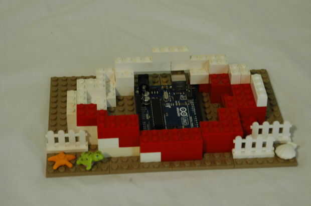 Una robusta torre se inicia con la primera construcción de una buena base. Asegúrese de que su arduino puede caber en la base de su faro. También, recuerde dejar una abertura para un fácil acceso a la toma de corriente. Inspeccione la forma de su faro. Asegúrese de que está en la forma que desea. En este punto, pensar de qué esquema de patrón y el color le gustaría. Esto ayuda a tener en mente al edificio. Como se puede ver, elegí un patrón espiral con ladrillos rojos y blancos.