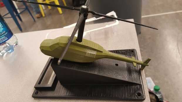 En la Universidad de Florida del sur hay un laboratorio llamado el centro de visualización avanzada donde hay más de 10 impresoras 3D para el uso de los estudiantes. Cuesta $0,06 por gramo de plástico y es donde imprimí todas mis partes (el helicóptero, la tapa de la caja y el eje del rotor y hojas). Pasé unos $20 para imprimir todas mis piezas.