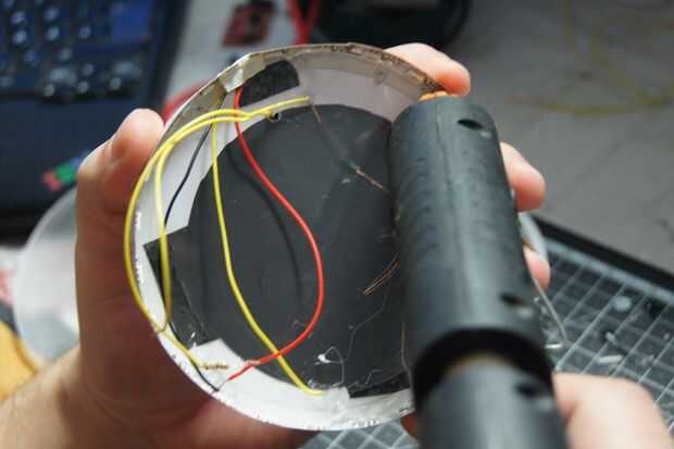 La parte bottom_top o el el disco de vidrio de acrílico de 5 mm al construir variante 2 debe adaptarse perfectamente al margen externo de la tira de LED, por lo que sólo veremos la parte de bottom_bottom o el disco de acrílico de 3 mm.