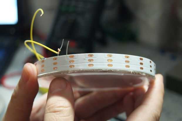 Para evitar que la luz brilla a través de la soldadura pastillas adhieren a una ronda de tipo alrededor de la tira de LED.