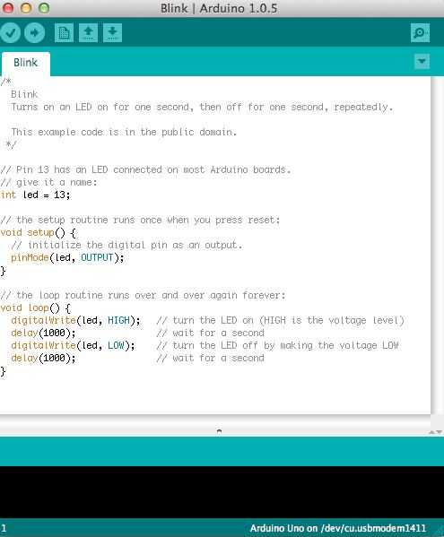 /*<br> Blink Turns on an LED on for one second, then off for one second, repeatedly. This example code is in the public domain. */ // Pin 13 has an LED connected on most Arduino boards. // give it a name: int led = 13; // the setup routine runs once when you press reset: void setup() { // initialize the digital pin as an output. pinMode(led, OUTPUT); } // the loop routine runs over and over again forever: void loop() { digitalWrite(led, HIGH); // turn the LED on (HIGH is the voltage level) delay(1000); // wait for a second digitalWrite(led, LOW); // turn the LED off by making the voltage LOW delay(1000); // wait for a second }