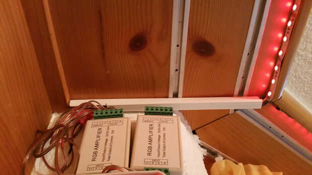 quería encontrar una manera de alegrar mi sala de estar con una difusa luz y colorido. Así que opté por usar una tira de LED 5 metros de largo. Tira para colocarse en piezas de mobiliario suficiente. El gabinete es un poco más de 2,5 metros. ¿Así, có