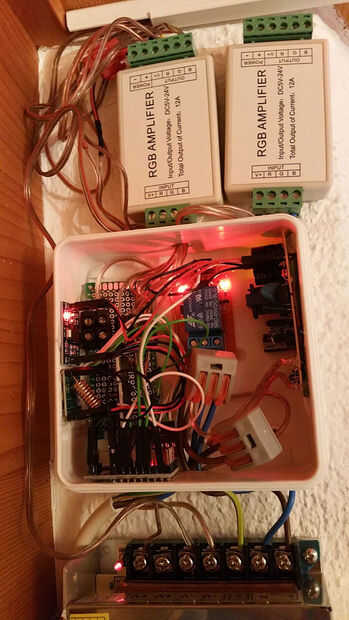 Uno de los primeros proyectos que hice con un Arduino era una guirnalda de luces de Navidad. De hecho, fue hecho de una tira de LED RGB sencilla cortar en dos, como Arduino tiene sólo 6 salidas PWM de hardware. No quería triviales arcoiris y colores