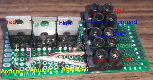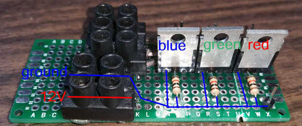 Para más info sobre el MOSFET y LED y cosas, consulte algunas páginas de Adafruit o http://www.jerome-bernard.com/blog/2013/01/12/rgb-...
