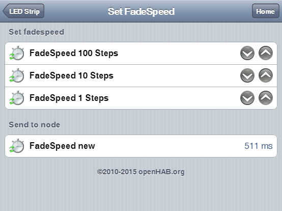 El FadeSpeed_100, _10, _1 y Dimm_100, _10, _1 pasos se utilizan para establecer los nuevos valores. Es más fácil utilizar un control deslizante que botones subir o bajar.