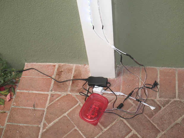 Para la tira del LED de montaje, las grapas de 1/2" NM funcionó bien para mí, pero hay un montón de otros enfoques. No creo que le confío la cinta adhesiva, aunque puede trabajar. En mi caso, yo se deslizará las tiras hacia fuera después de las vacaciones de Navidad ya que tienen los LEDs de color separado (ver la lista de piezas).