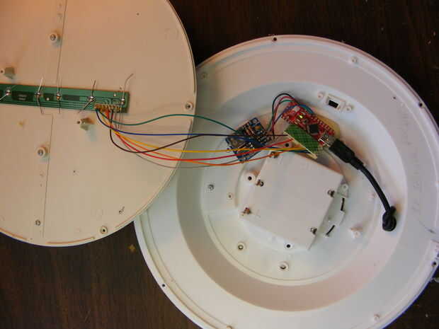 Coloque el Arduino y RTC usando una combinación de cinta de doble cara de espuma y pegamento caliente. Vuelva a montar los tres discos junto con los tornillos originales.