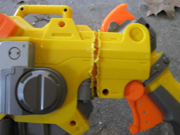 Luego utilice lo que método desea cortar a lo largo de la línea en el punto donde se unen ambos lados de la pistola. Hay muchos métodos de hacerlo. Sólo usé una sierra. Elegir método de corte y cortar por la línea.